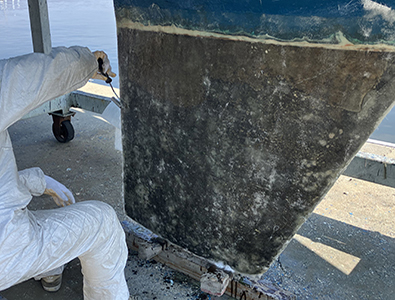 48feetのキールが深いため、ハーバーでの上架が不可なのでダイバーに潜ってもらった。