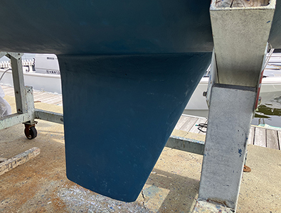 年一回、キールとスケグとラダーをメインにボトムをサンディング。