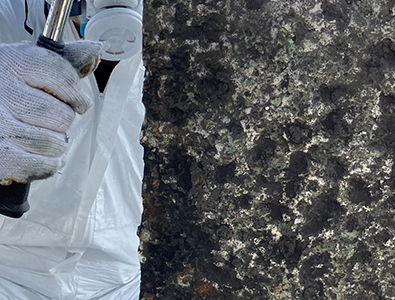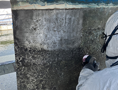 シリコンを剥がし、軽くサンディングしてアクリル、シリコン系を塗布。