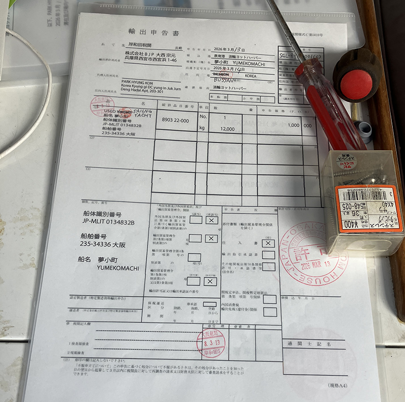 12日に尼崎で通関手続きを終え、淡輪YHで整備のため上架した「Y30C」