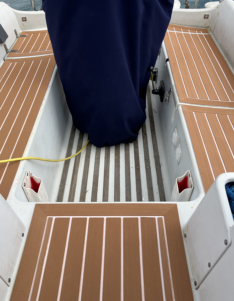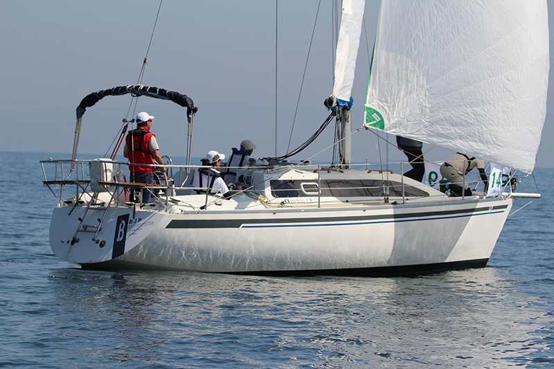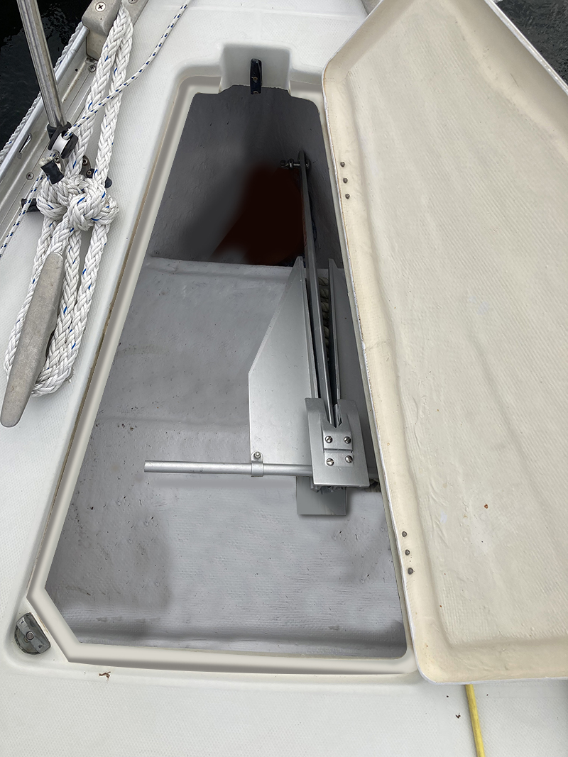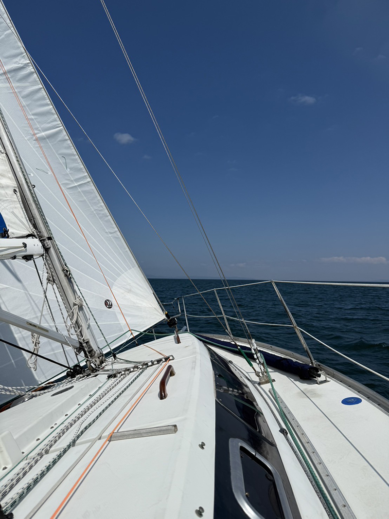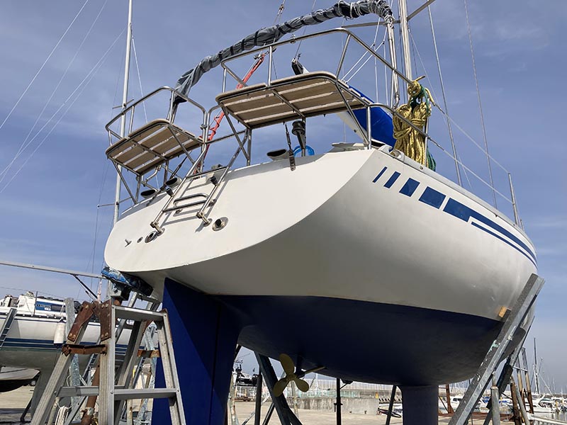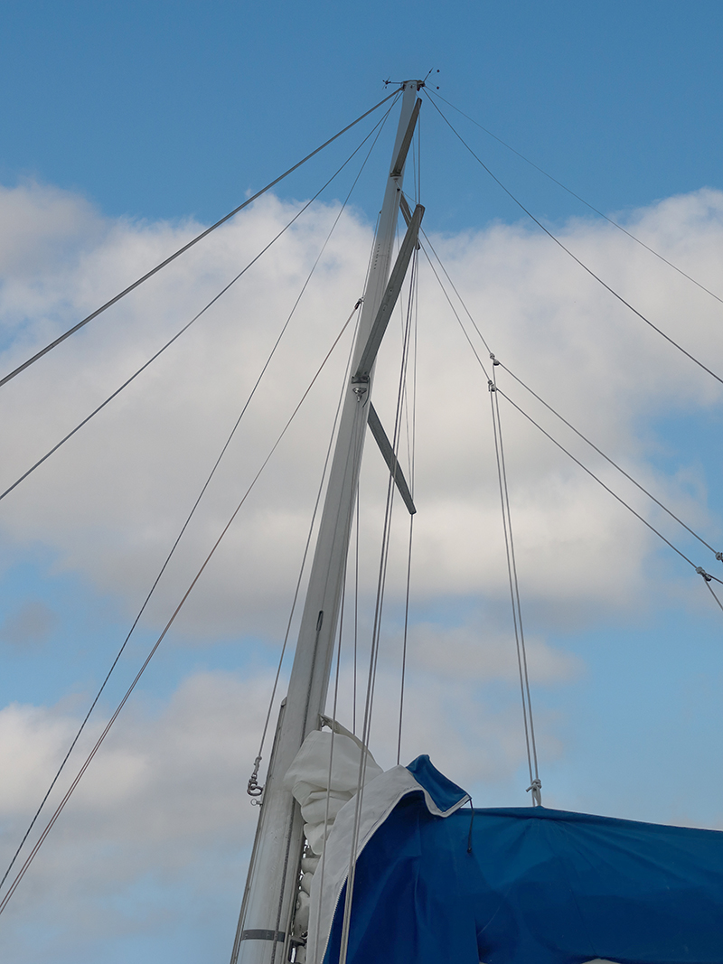 淡輪ヨットハーバー:マスト起て・リギンミドル交換・ハルのバフ掛け・船底塗装(プラドールZブルー)