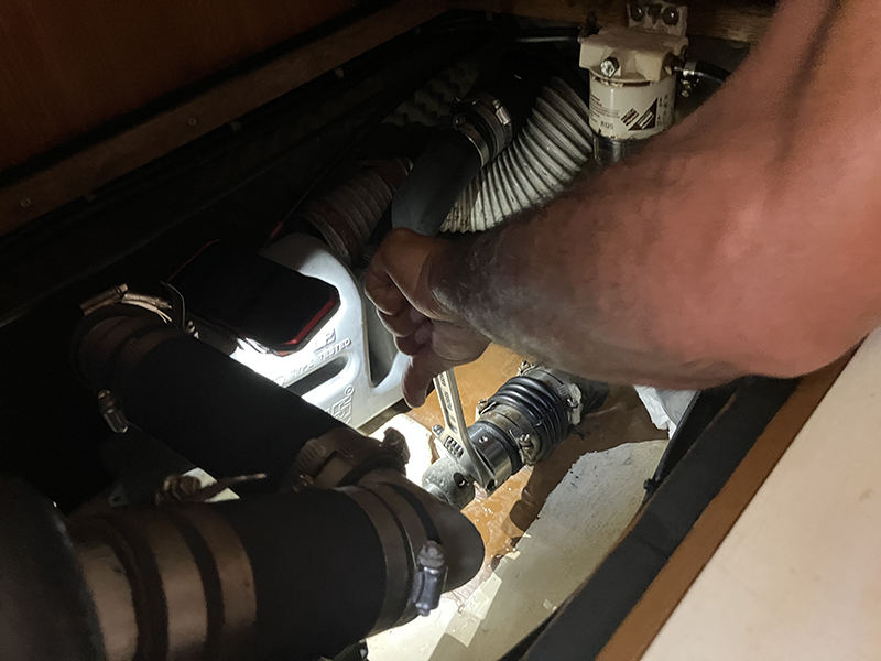 | VOLVO MD2030のミキシングエルボー。 先日のキングストンと同じで目詰まりが起こります。 エンジンに不調が起こると要注意。 |