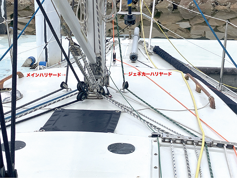 | コックピットから見たマストイグジットのハリヤード。 | ||||||||||||||||||||||