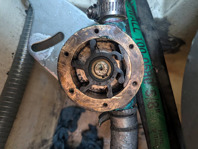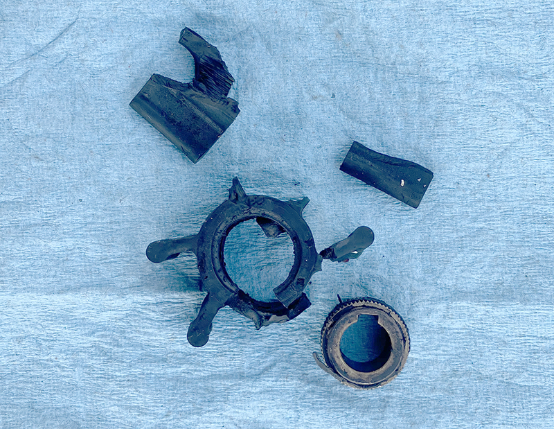 | 2GM20Fのインペラが破損した。 原因は冷却水不良。 万一のためスペアを持っておくことも必要かも? |