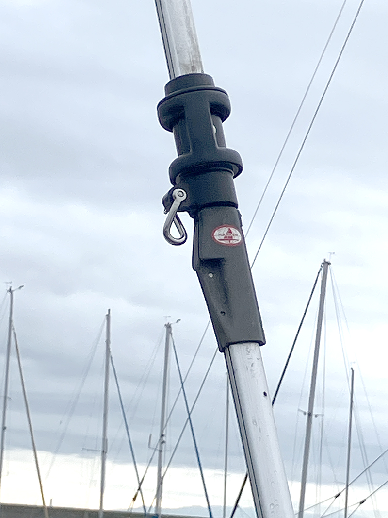 | レイジージャックとストロングトラック。 今では殆どのクルージング仕様でシングルハンドのヨットには取り付けられています。 このシステムがないと、セイルアップやダウンにかなり苦労をします。 今回は、レイジージャック(ブームカバー)をオーダー。 ストロングトラックとの併設で、アップ、ダウンがかなりイージーになっています。 セイリング中は、ブームに巻き着けるのも良し、そのままでも良し。 |