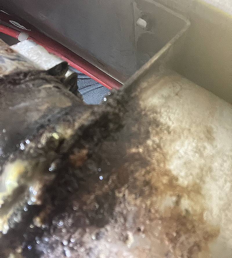 | ステンレス製のウォーターロック。下部の溶接部分から漏水。 | |||||||||
