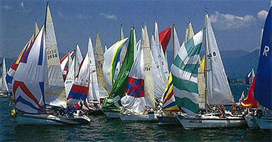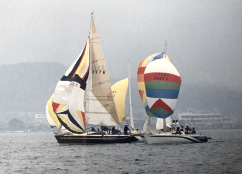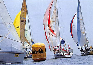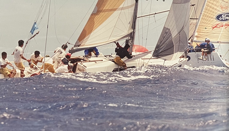 1990年、第16回オレンジカップ。総合3位。スタートでChaCha(Farr40)と。 |