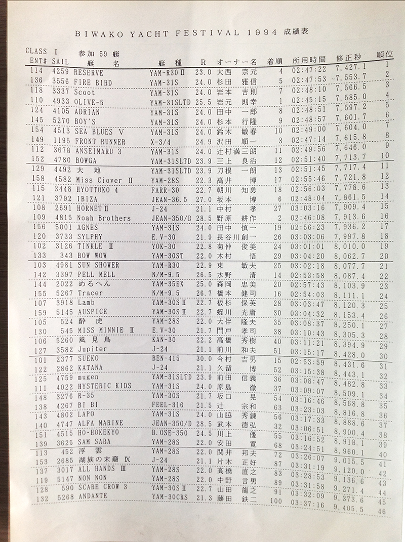「YR」には1994年まで乗り続け、琵琶湖ではYAMAHA CUPやNORCのレースに参加、マリーナ主催のマリーナ保管だけのレース親睦会などは楽しい思い出です。