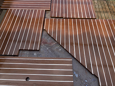 淡輪ヨットハーバーに運び込まれたCRSは経年劣化と雨漏り痕、サビなどでコンディションが良くなく、デッキ、キャビン共にリメイクすることに。