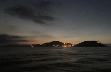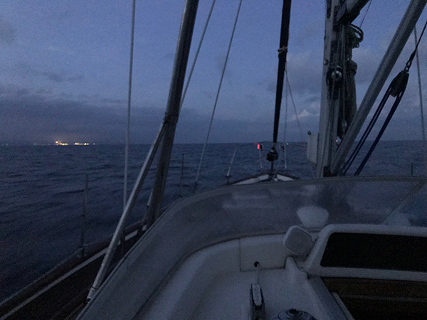 少し波がおさまった時を見計らい、真っ暗闇の中、御前崎マリーナに移動した。